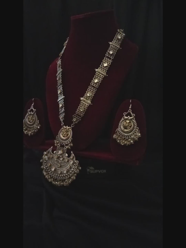JIVIKA SILVER OXIDIZED LONG NECKLACE SET