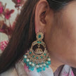 Step into elegance with these stunning Gold Plated Chandbali earrings, a perfect fusion of traditional craftsmanship and modern charm. Featuring a mesmerizing combination of vibrant blue stones, lustrous pearls and intricate gold-toned detailing, these chandbali earrings exude sophistication. The jhumka-inspired design is adorned with cascading beadwork that adds movement and grace, making them an ideal statement accessory for weddings, festive celebrations or grand events.